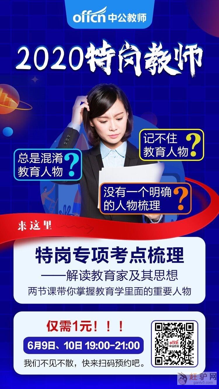 2020年贵州特岗教师招聘笔试技巧先锋营主讲内容:教育综合知识上课时间:7月5日-6日上课费用:免费上课地点:赫章县城关镇小河沟大桥上中公教育活动福利:到场者均赠送备考资料一本需要的同学扫码图中二维码...