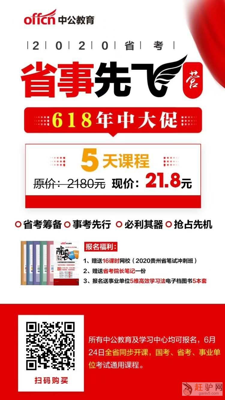 2020年贵州特岗教师招聘笔试技巧先锋营主讲内容:教育综合知识上课时间:7月5日-6日上课费用:免费上课地点:赫章县城关镇小河沟大桥上中公教育活动福利:到场者均赠送备考资料一本需要的同学扫码图中二维码...
